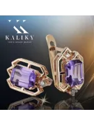 "Boucles d'oreilles en or rose 14 carats avec alexandrite de style vintage soviétique russe...